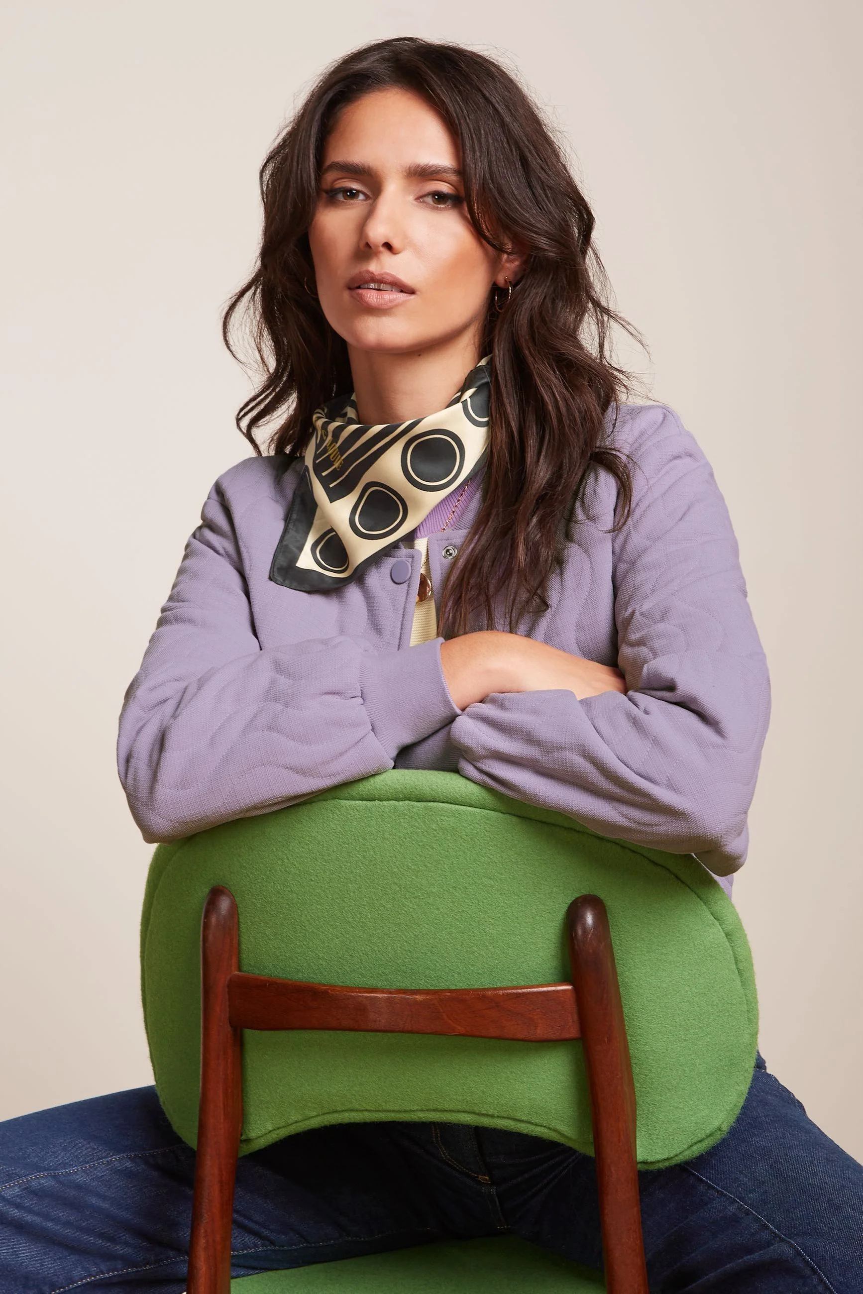 Plongez dans l’élégance intemporelle avec le foulard Cléo King Louie, une pièce raffinée qui sublime instantanément n’importe quelle tenue. Son motif graphique noir et crème, inspiré du mouvement Op Art, apporte une dimension artistique et originale à votre style.