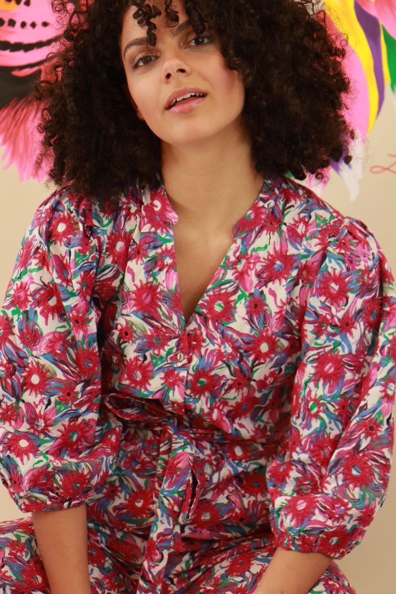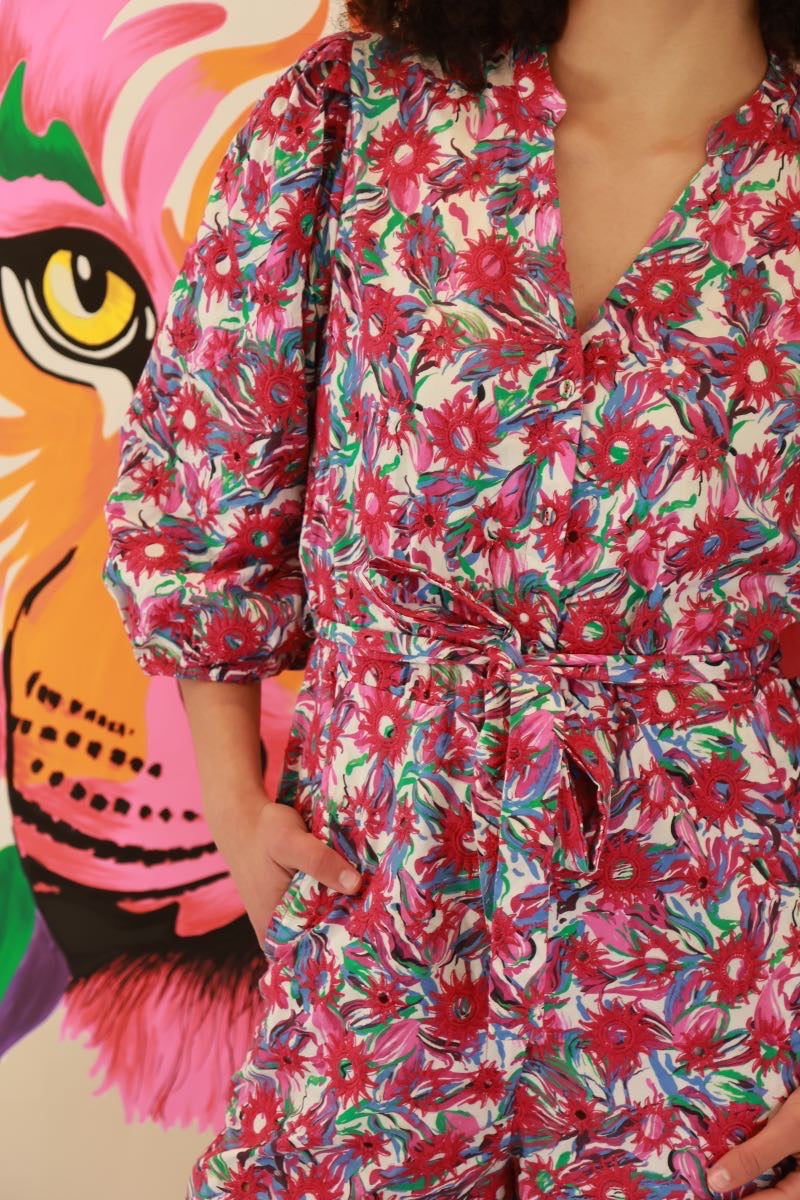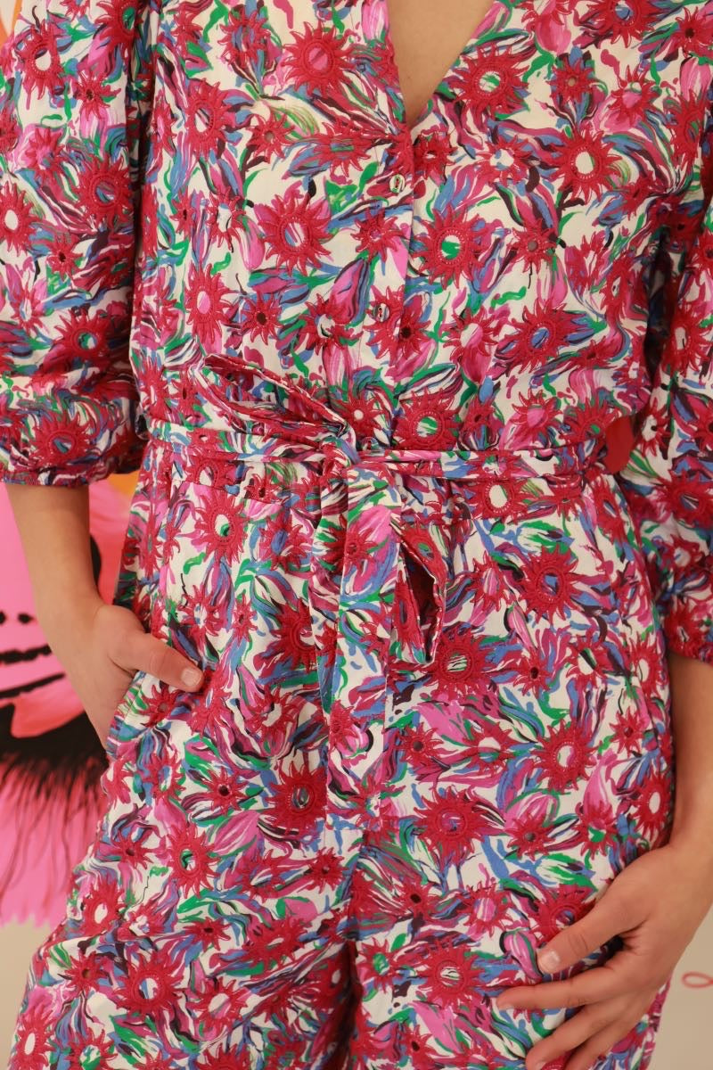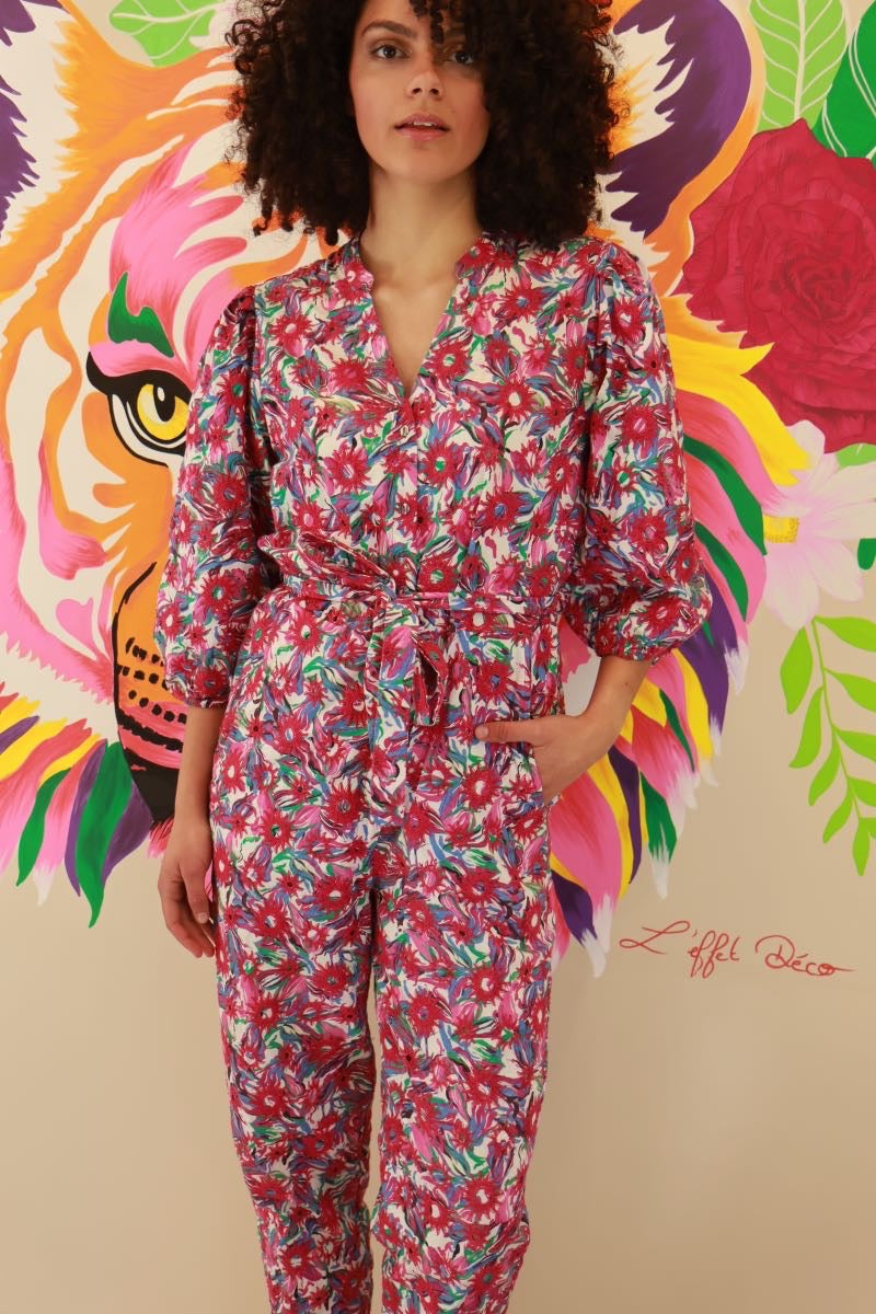 Quand la combi devient une œuvre d’art ! Cette combinaison signée Pom Amsterdam est un cocktail vitaminé de fleurs sauvages et de bonne humeur. Son imprimé explosif, tout en nuances de rose, rouge, violet et vert, réveille instantanément le look – et la journée !