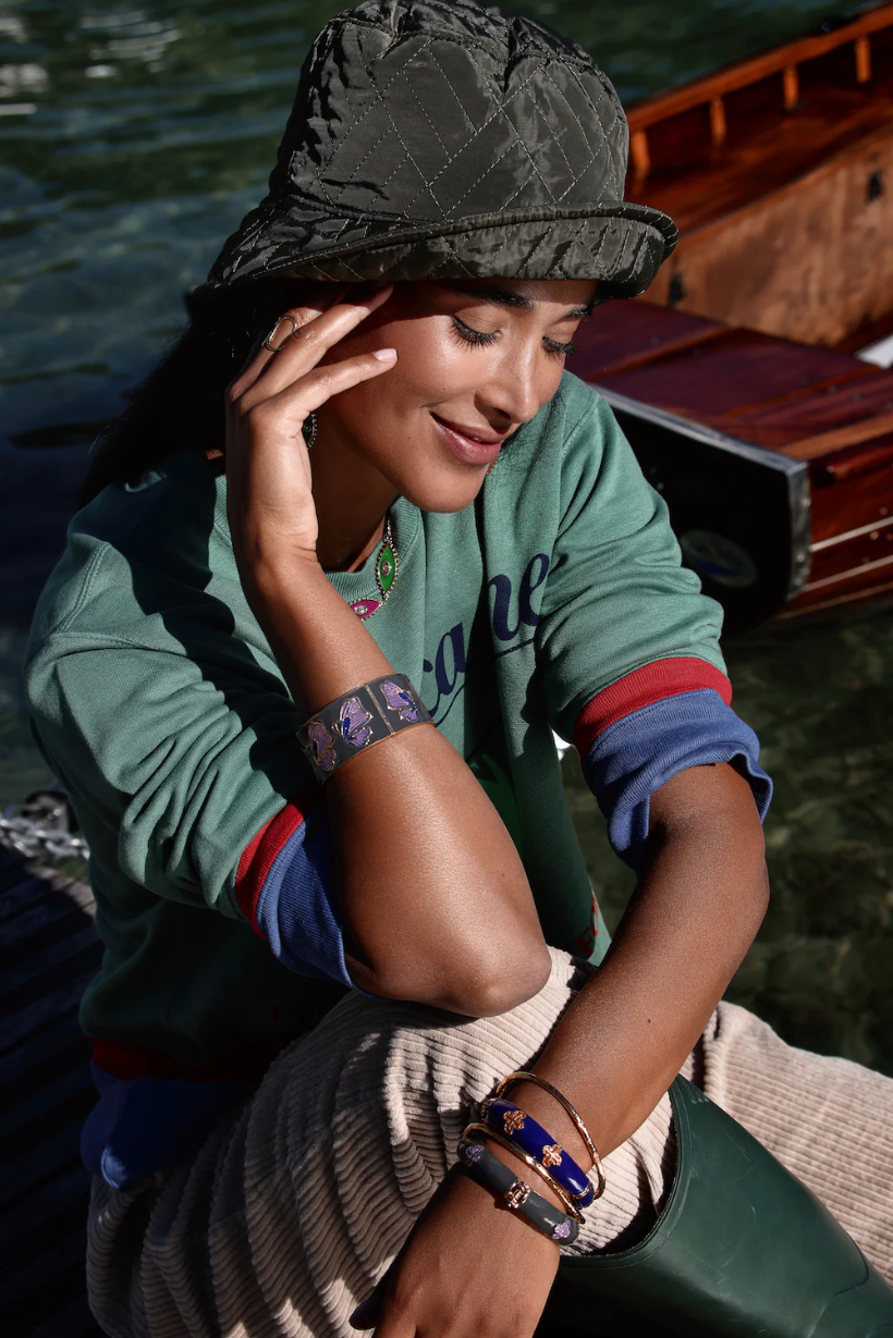 Laissez-vous séduire par le Jonc Amok Butterfly, une véritable ode à la nature et à la liberté. Ses délicats motifs de papillons, posés sur un fond émaillé aux couleurs chatoyantes, apportent une touche de poésie et de raffinement à votre style.