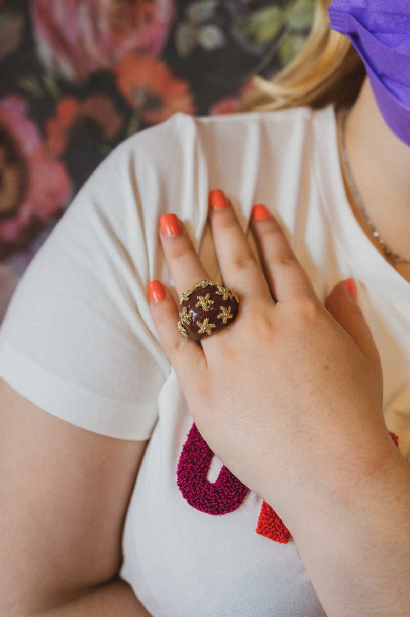 J’aime les bagues fantaisie, m’amuser à les porter, les accumuler, et en changer chaque jour