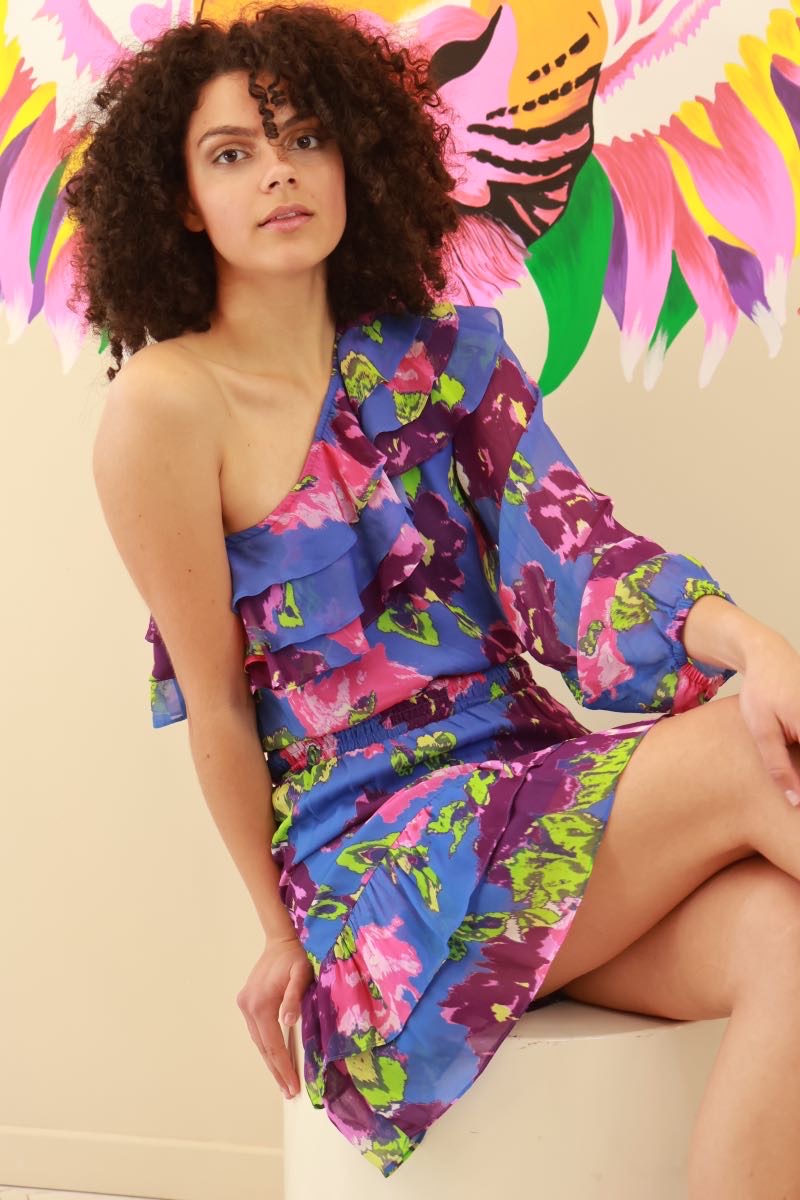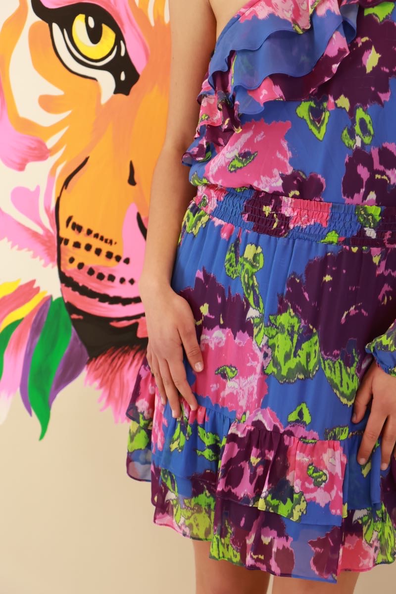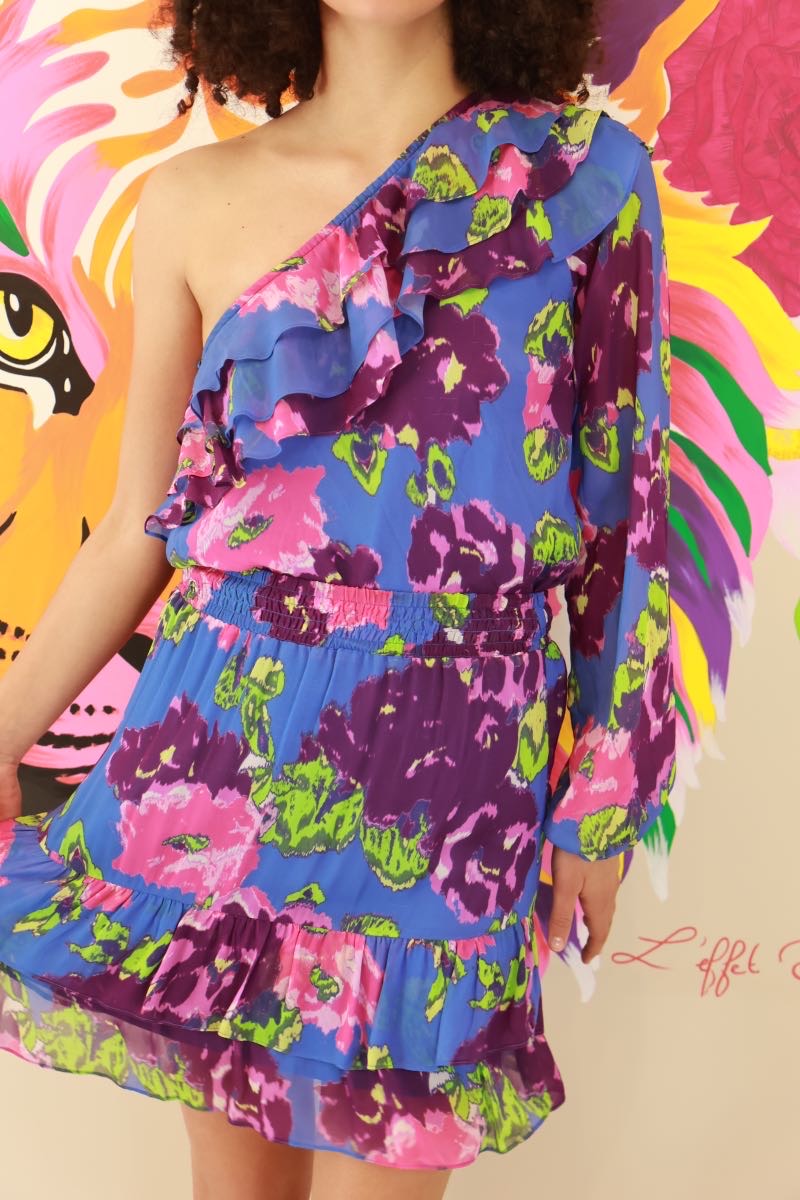 Du peps, du style et un tombé parfait : cette jupe signée Alix The Label est un vrai concentré de bonne humeur ! Avec ses teintes vibrantes de bleu, rose, violet et vert, elle offre un motif floral contemporain et punchy, pile dans la tendance de la saison.