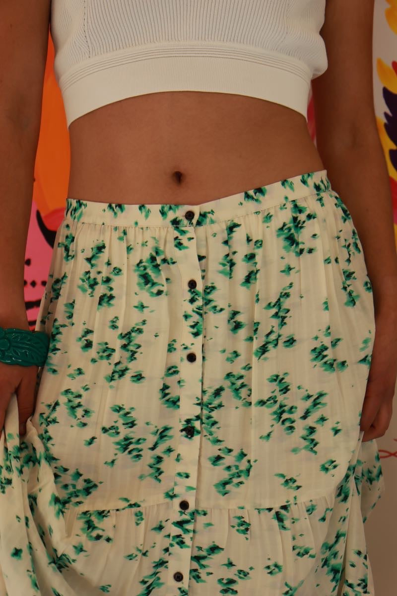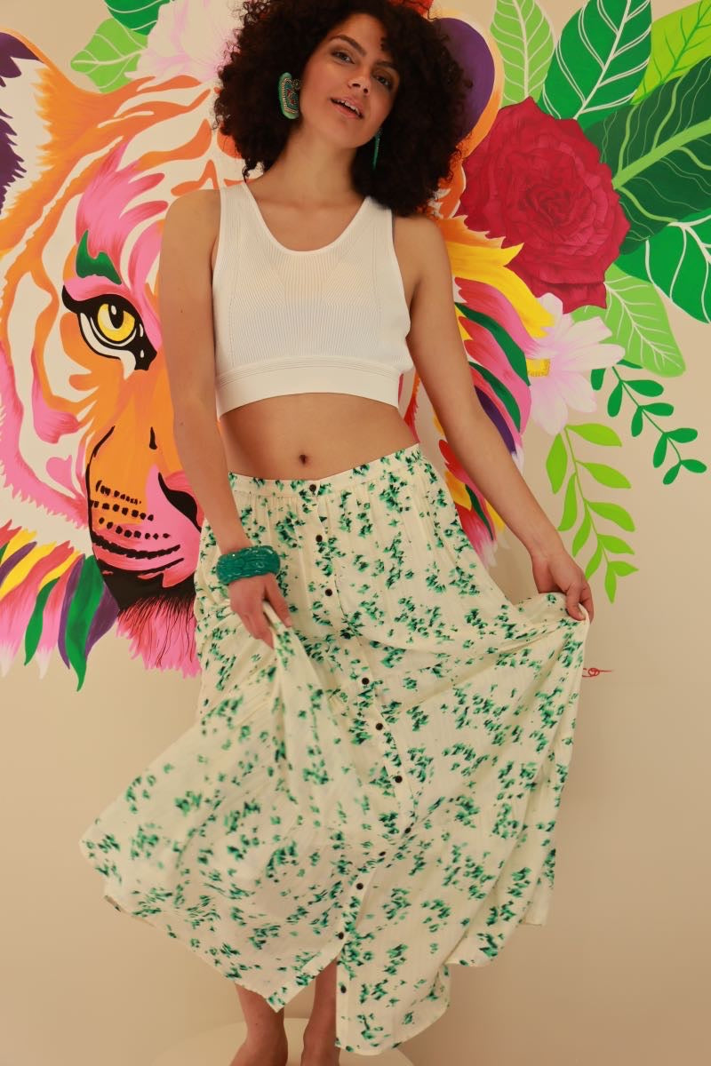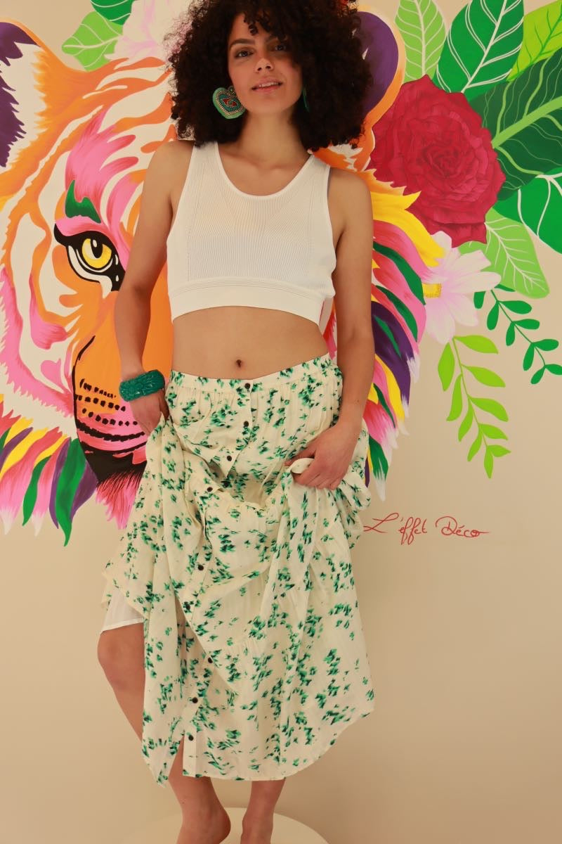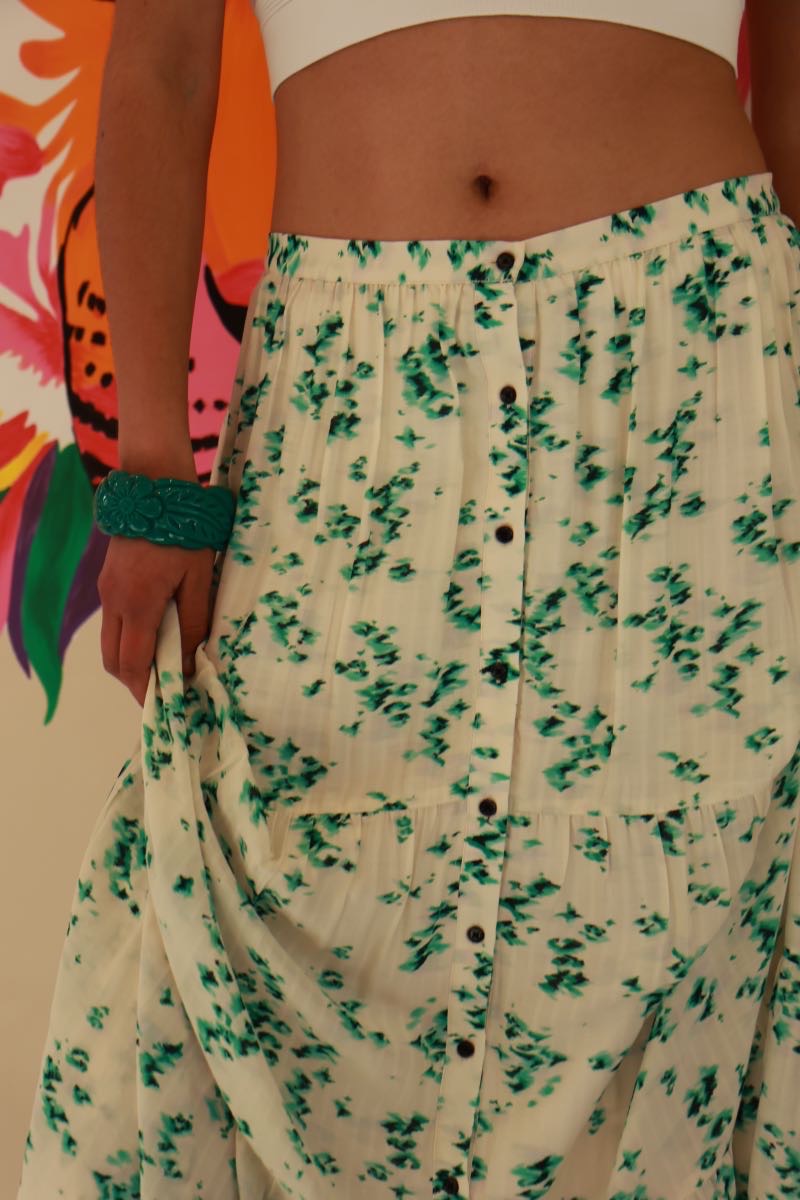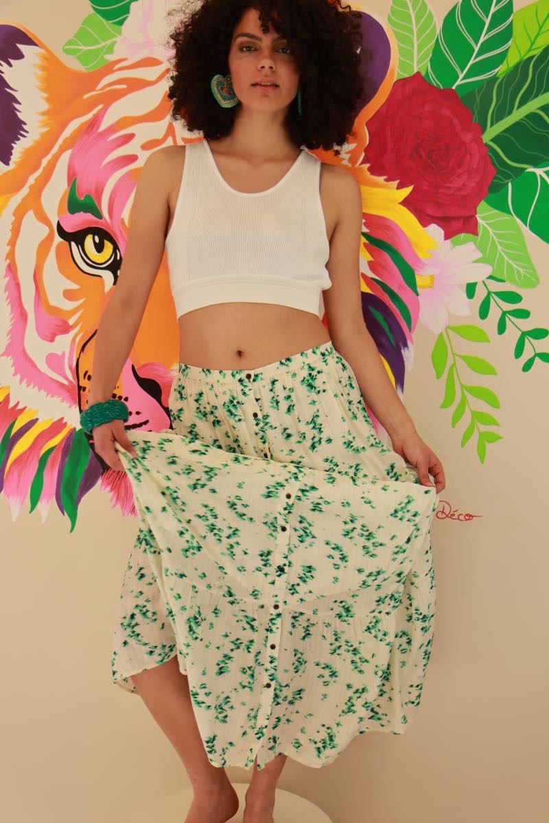 Jupe Longue Bérénice Seconde Main Taille 38 – Imprimé Végétal Bohème Chic