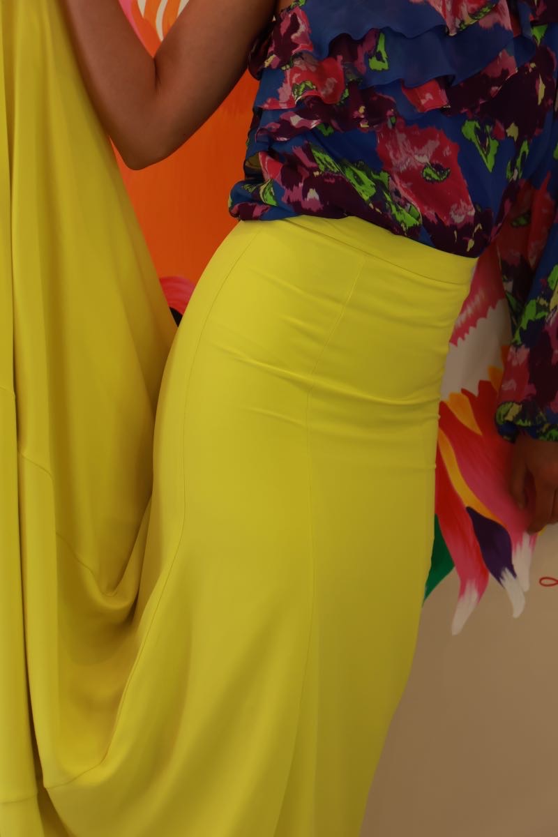 Son jaune citron éclatant et sa coupe ajustée, qui s’évase délicatement vers le bas, te donnent une allure glamour et sophistiquée, parfaite pour un événement spécial. Confectionnée en polyester doublé, elle offre un tombé impeccable et une touche de luxe, avec une taille haute qui met en valeur toutes les silhouettes.