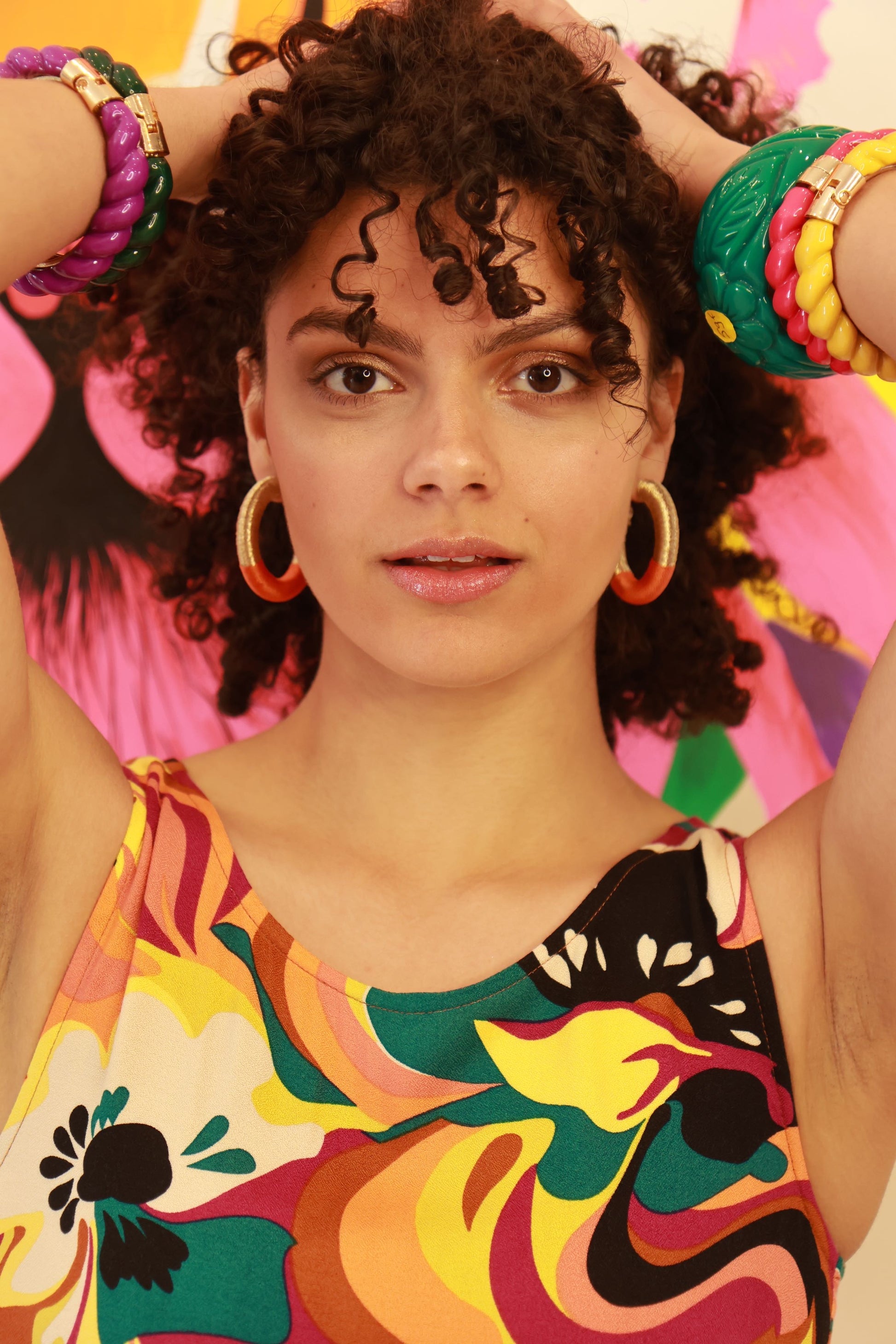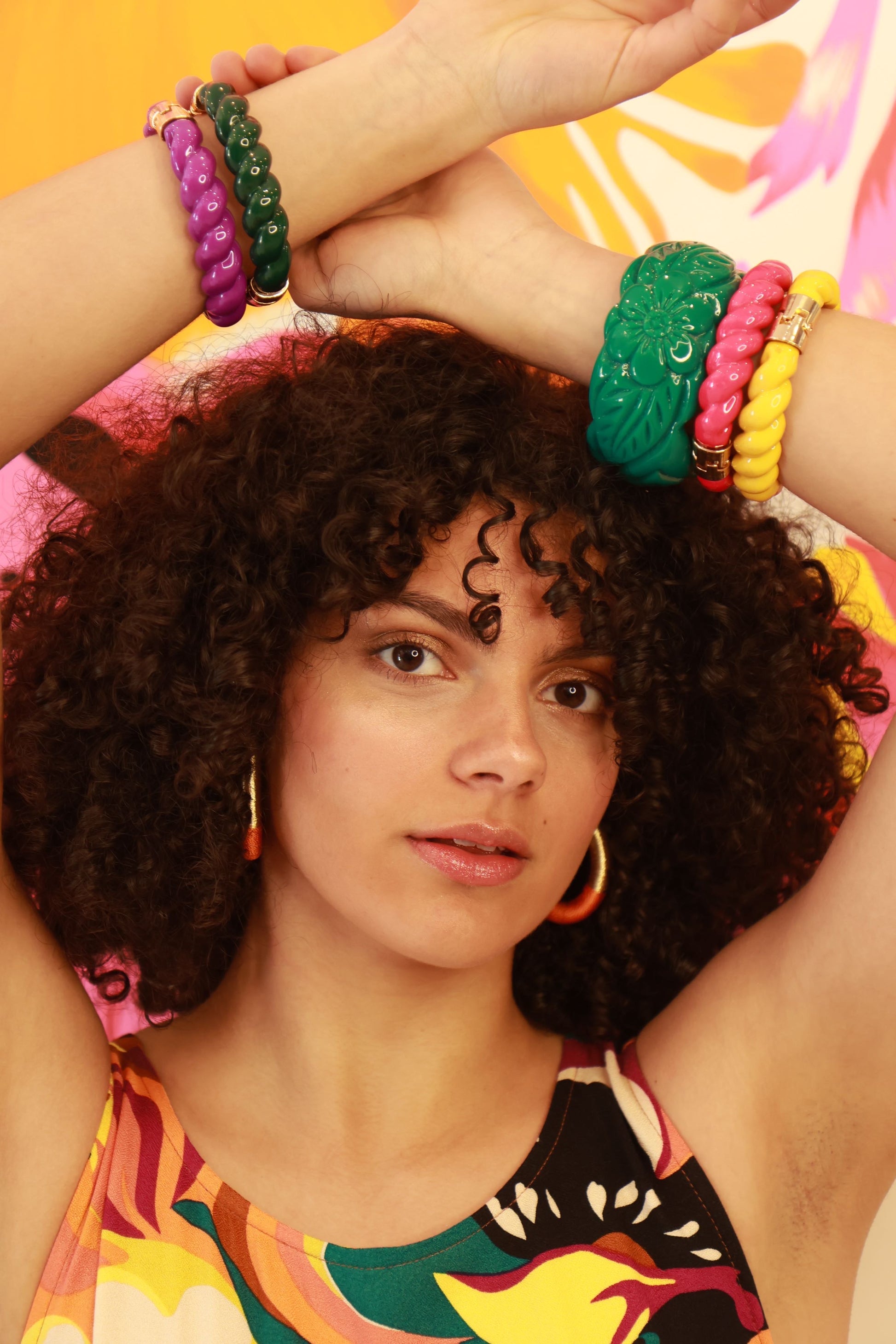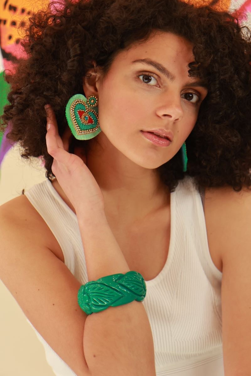 Prête à enchanter ton poignet avec une touche de nature audacieuse ? La manchette "Émeraude" signée Marion Godart, sculptée en résine, est un bijou qui respire la rébellion florale ! Ce bracelet rigide, à la courbure élégante, brille d’un vert émeraude éclatant, évoquant les profondeurs d’une forêt luxuriante, avec une finition glossy qui capte la lumière à chaque mouvement.