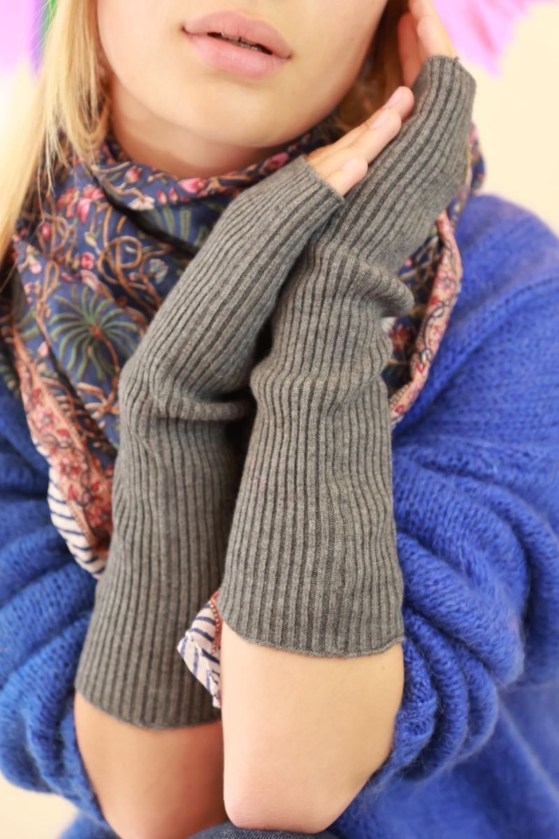 Des mitaines grises, l'élégance incarnée pour affronter le froid avec style. Conçues pour étreindre chaque doigt dans un cocon de chaleur, leur teinte grise neutre les rend polyvalentes, s'harmonisant avec n'importe quelle tenue. La texture douce et moelleuse offre un confort inégalé, tandis que le tricot fin ajoute une touche de sophistication.