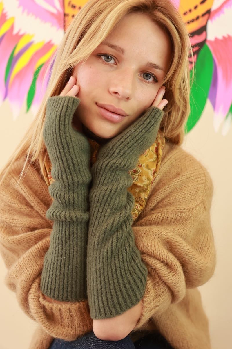 Affrontez le froid avec assurance, enveloppé dans la chaleur et l'élégance discrète de ces mitaines kaki, un essentiel chic pour votre garde-robe hivernale.