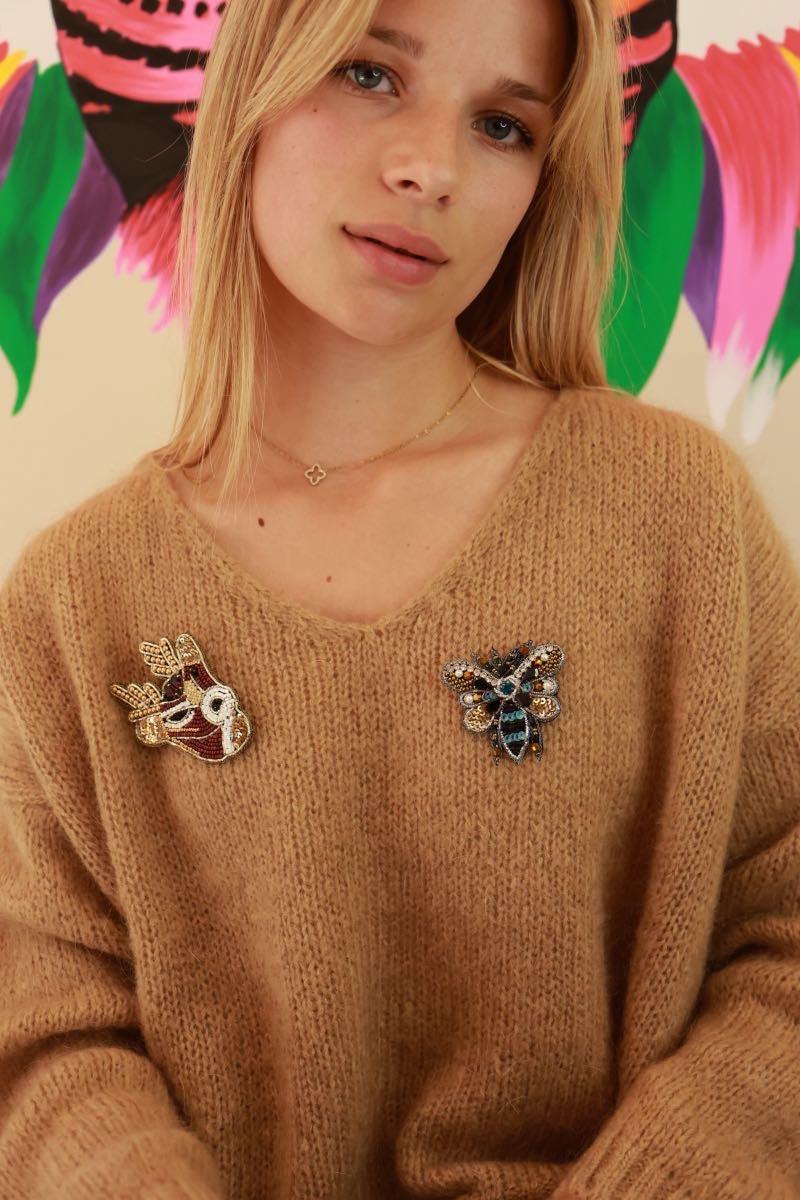 Accrochez cette broche sur un pull beige ou un blazer pour un effet harmonieux, et découvrez les autres pièces uniques de LaP'titeRebelle pour enrichir votre collection !