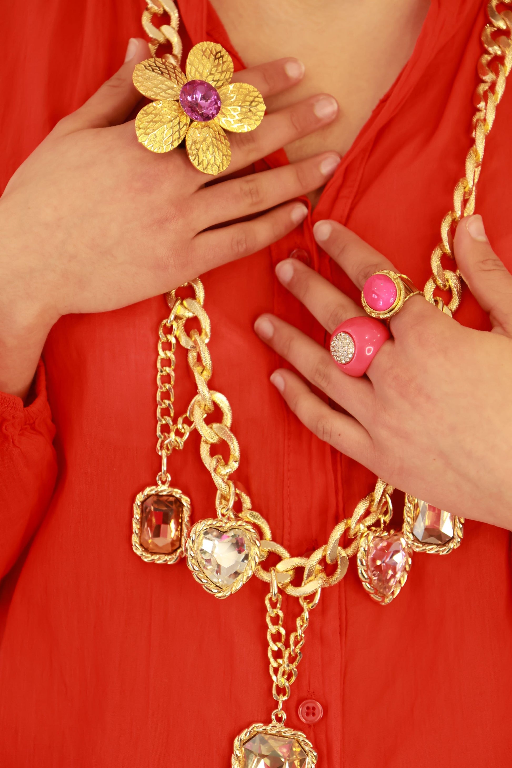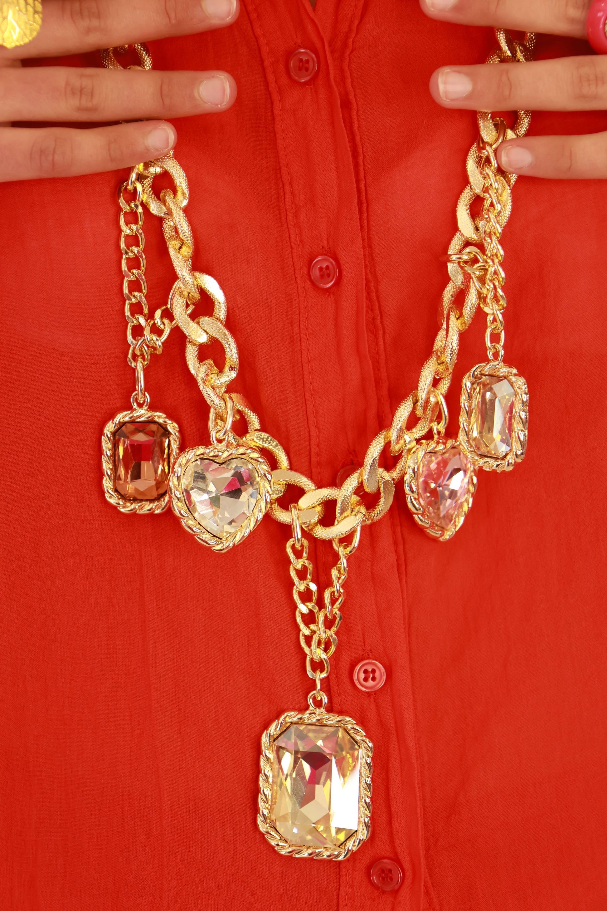 Prête à affirmer ton style avec une touche de glamour audacieux ? Ce collier sautoir est un cri de rébellion chic ! Ses chaînes dorées épaisses, d’une brillance éclatante, cascadent avec élégance, ornées de pierres rectangulaires et ovales aux reflets irisés rose et ambré qui captent la lumière à chaque mouvement.