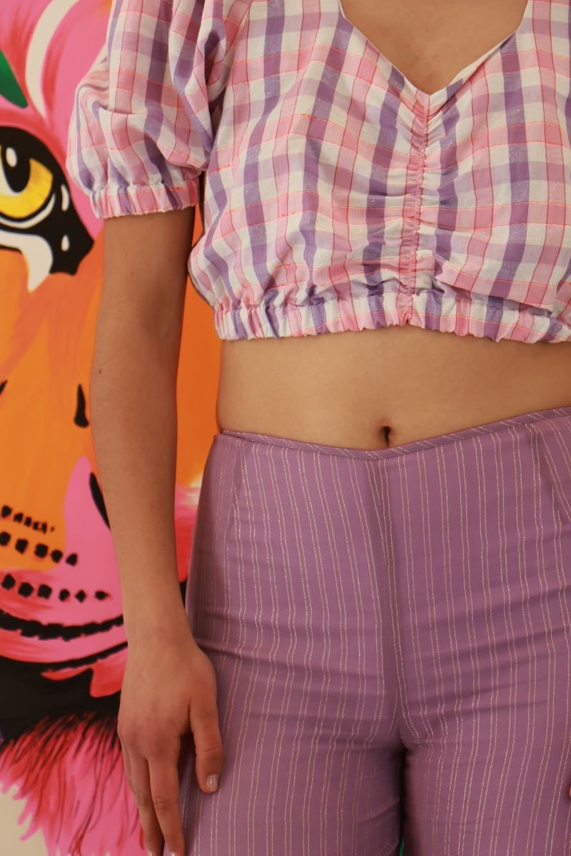 Pantalon lilas rayé – style Max Mara – Taille 36 – Seconde main
