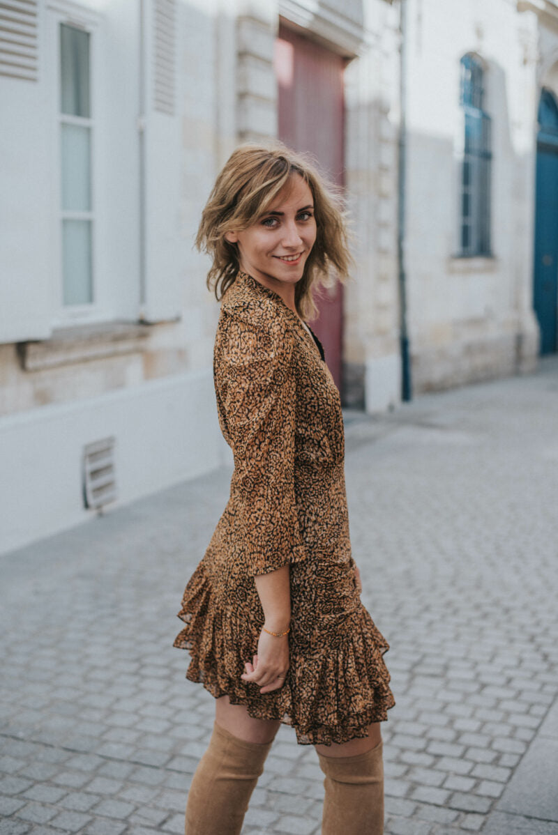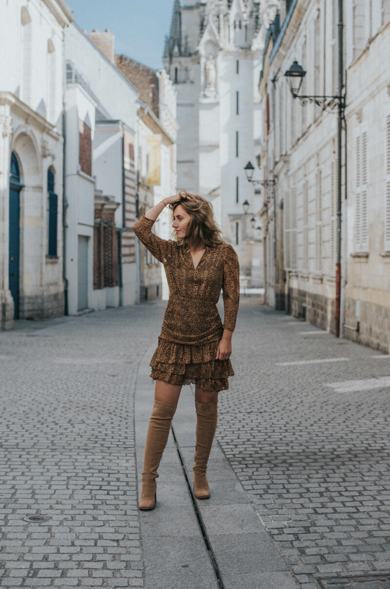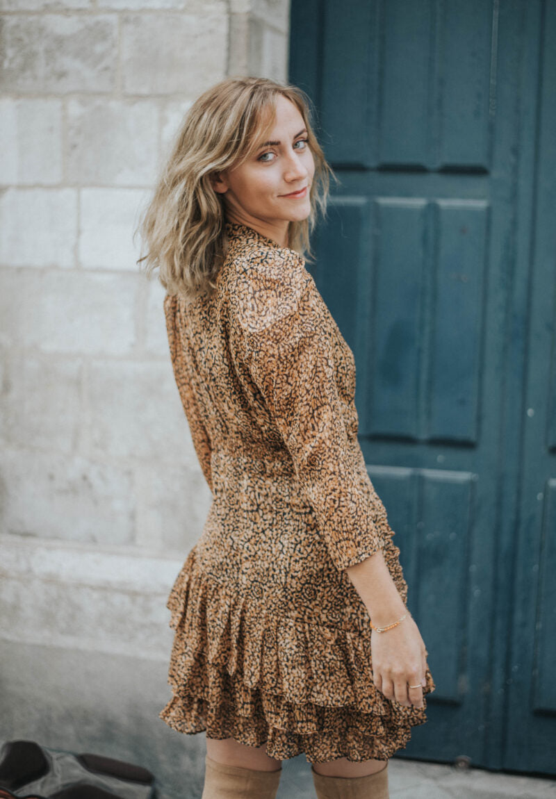 Robe Chirel by Suncoo aux motifs chauds et mordorés pour vous rendre sexy sans trop . Silhouette parfaite en vue !
