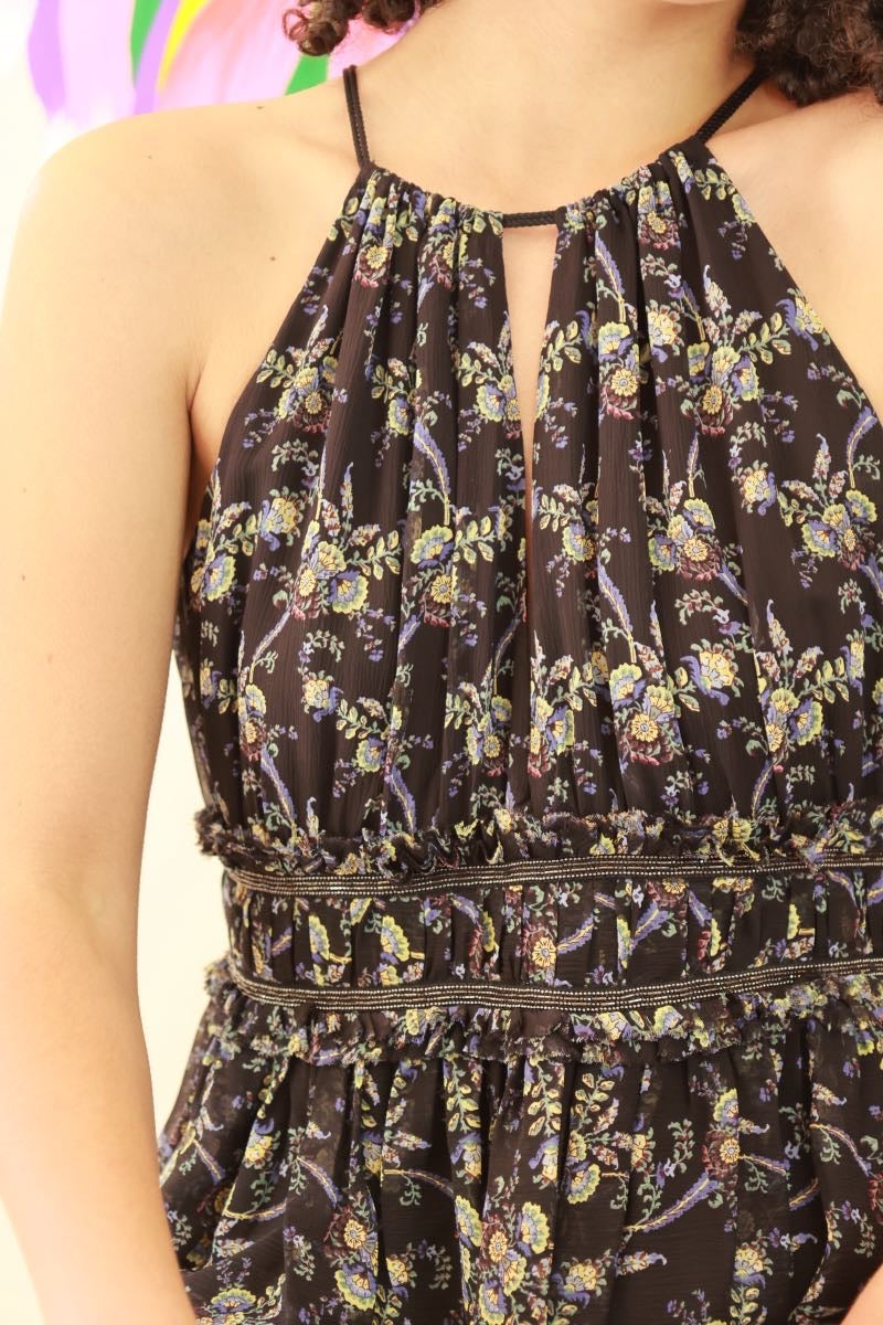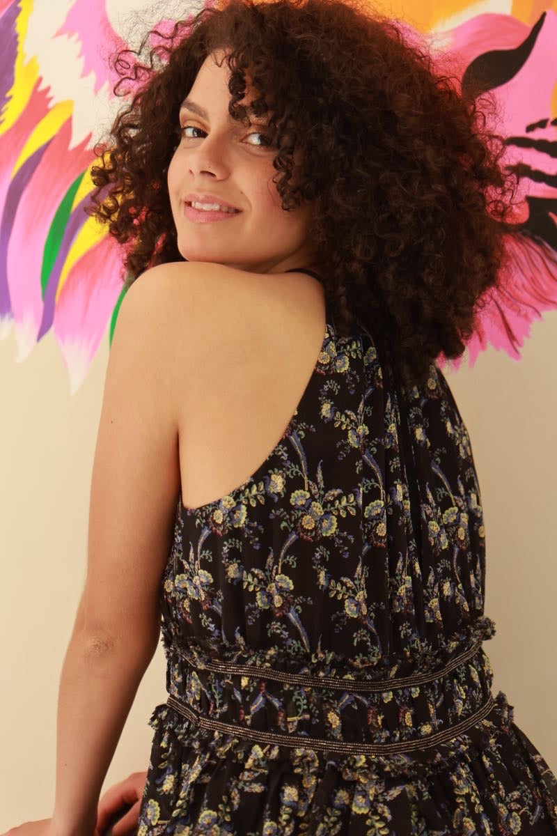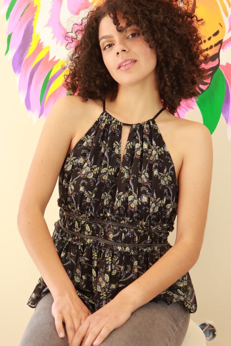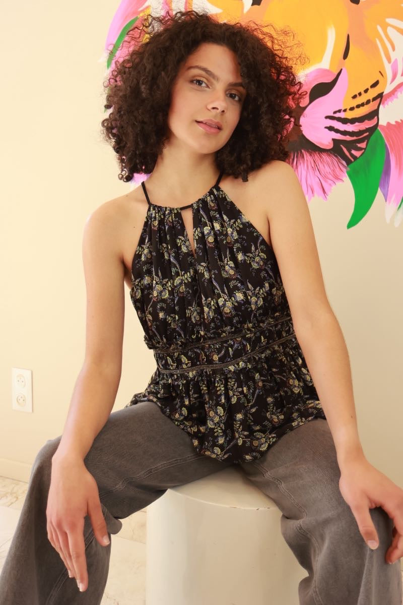 Sublimez votre garde-robe avec ce top The Kooples « seconde main », une pièce empreinte d’élégance et de modernité. Ce top sans manches noir arbore un motif floral noir, jaune et bleu clair, mêlant des teintes vibrantes sur un fond sombre pour un contraste saisissant. Sa coupe fluide, son encolure haute et sa taille cintrée apportent une touche féminine et raffinée, idéale pour un look bohème ou sophistiqué.