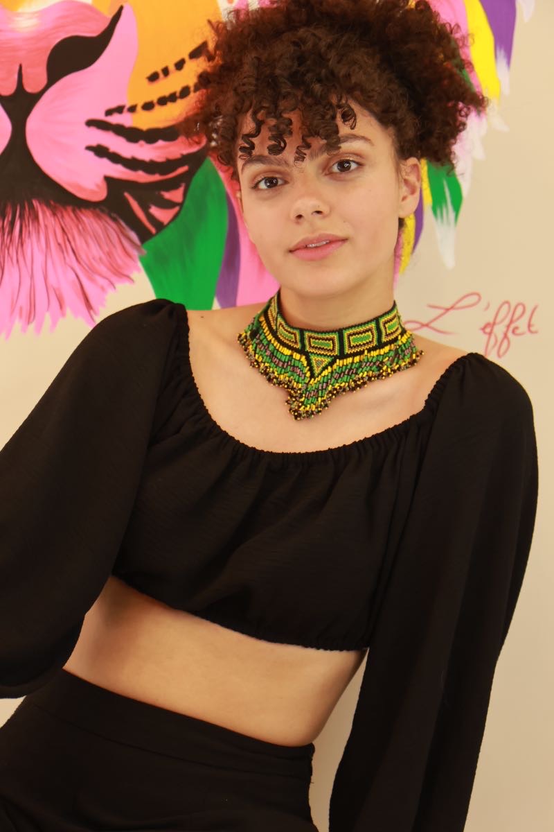 Ajoutez une touche de glamour bohème à votre dressing avec ce top noir signé Traffic People. Cette pièce seconde main, en très bon état, est une merveille pour toutes celles qui aiment conjuguer élégance et originalité.