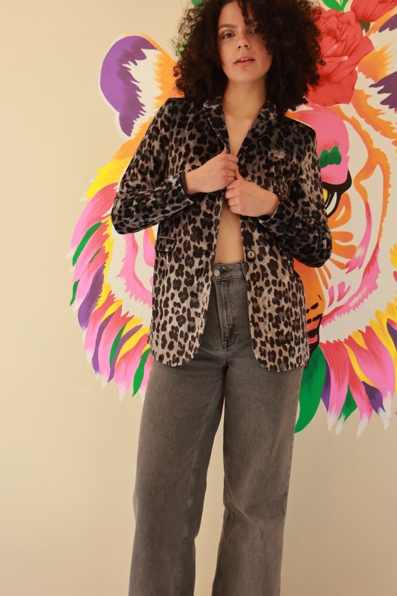 Affirmez votre style audacieux avec cette veste Alix the Label « seconde main », une pièce qui ne passe pas inaperçue. Confectionnée dans un tissu velouté orné d’un motif léopard sophistiqué, cette veste longue offre une coupe fluide et une encolure profonde, parfaite pour un look chic et sauvage. Ses manches longues et son design élégant en font un choix idéal pour rehausser une tenue simple ou compléter une tenue de soirée.
